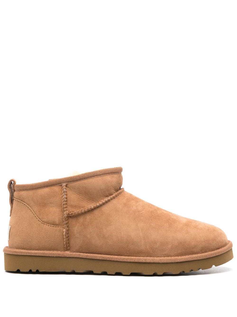 camel brown calf suede panelled design raised seam detail logo patch to the rear round toe pull-tab at the heel branded insole flat rubber sole faux-fur lining ankle-length slip-on style We`ve partnered with Good On You — an independent agency that rates how brands perform in relation to their impact on the planet, people and animals, with a multi-criteria rating simplified to a five points scale. In order to be awarded our conscious label, larger brands need to score a minimum of four out of five (`Good`), while smaller brands must score at least three out of five (`It`s A Start`). Please note, this is a brand-level rating and does not guarantee that this product is made with conscious materials. Learn more about what makes a product Conscious on our Conscious Criteria page